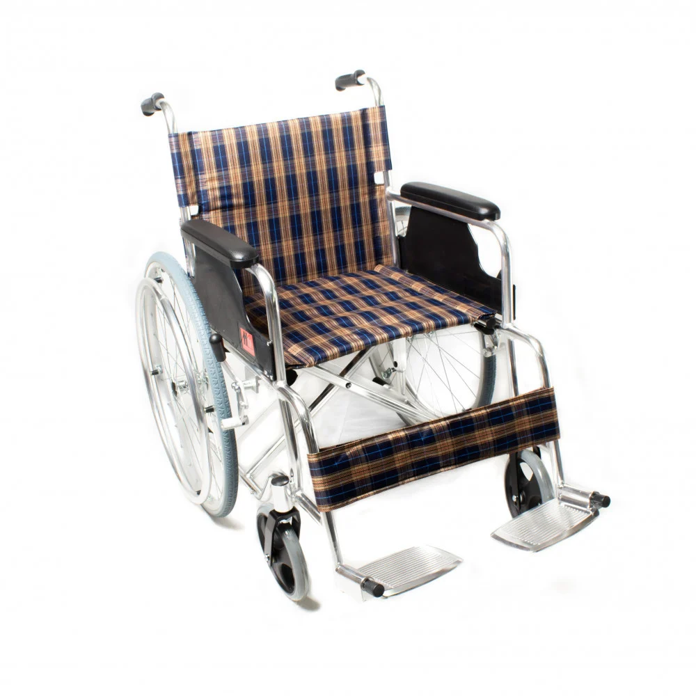 كرسي متحرك المونيوم خفيف الوزن مقاس ١٨انش كاروهات قماش كفر كبير جوانب ثابتة موديل ٨٧٤