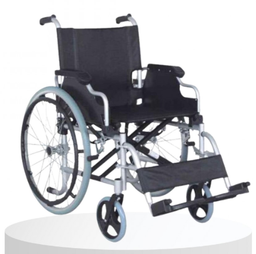 كرسي متحرك من الالومنيوم مع عجلة سريعة التحرير اسود
