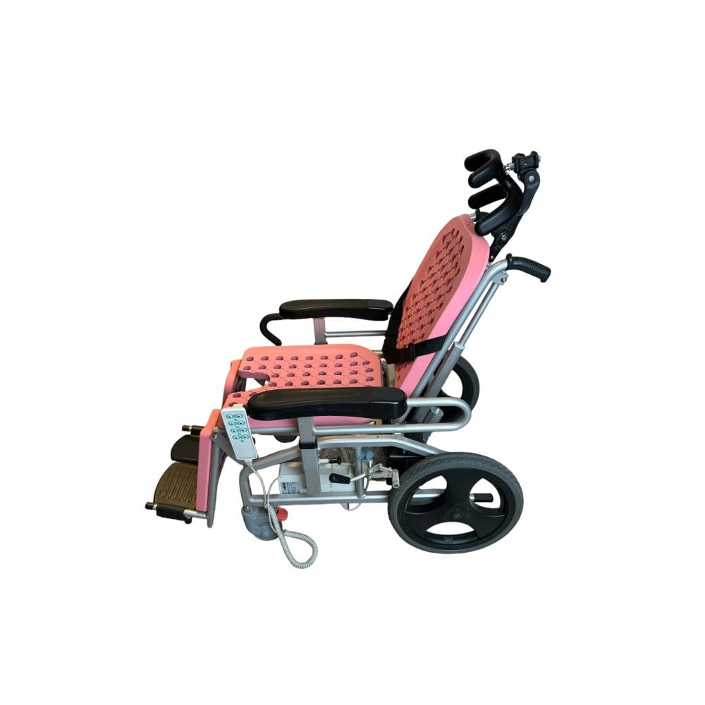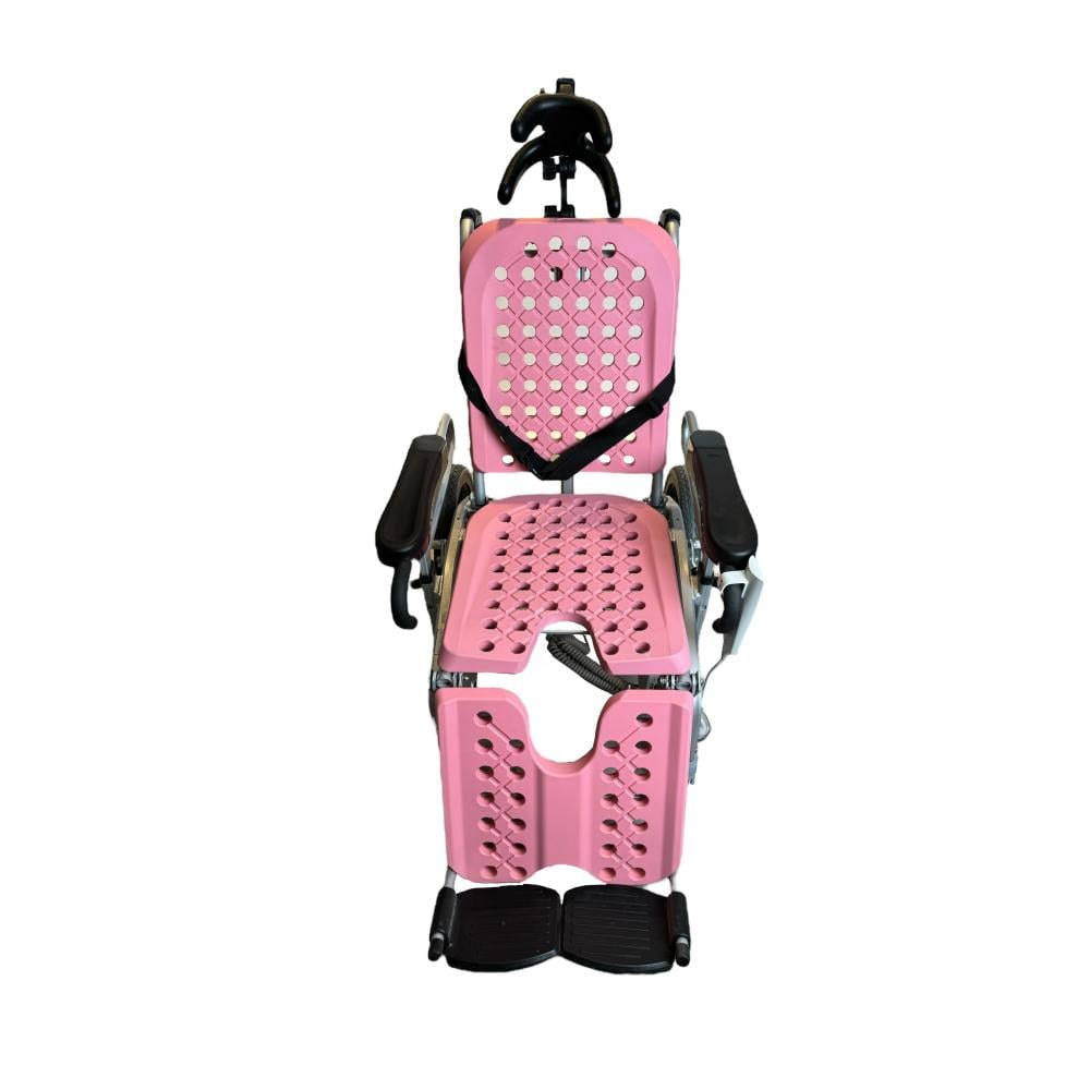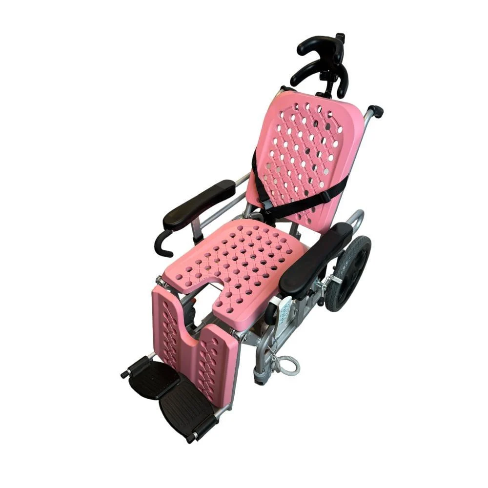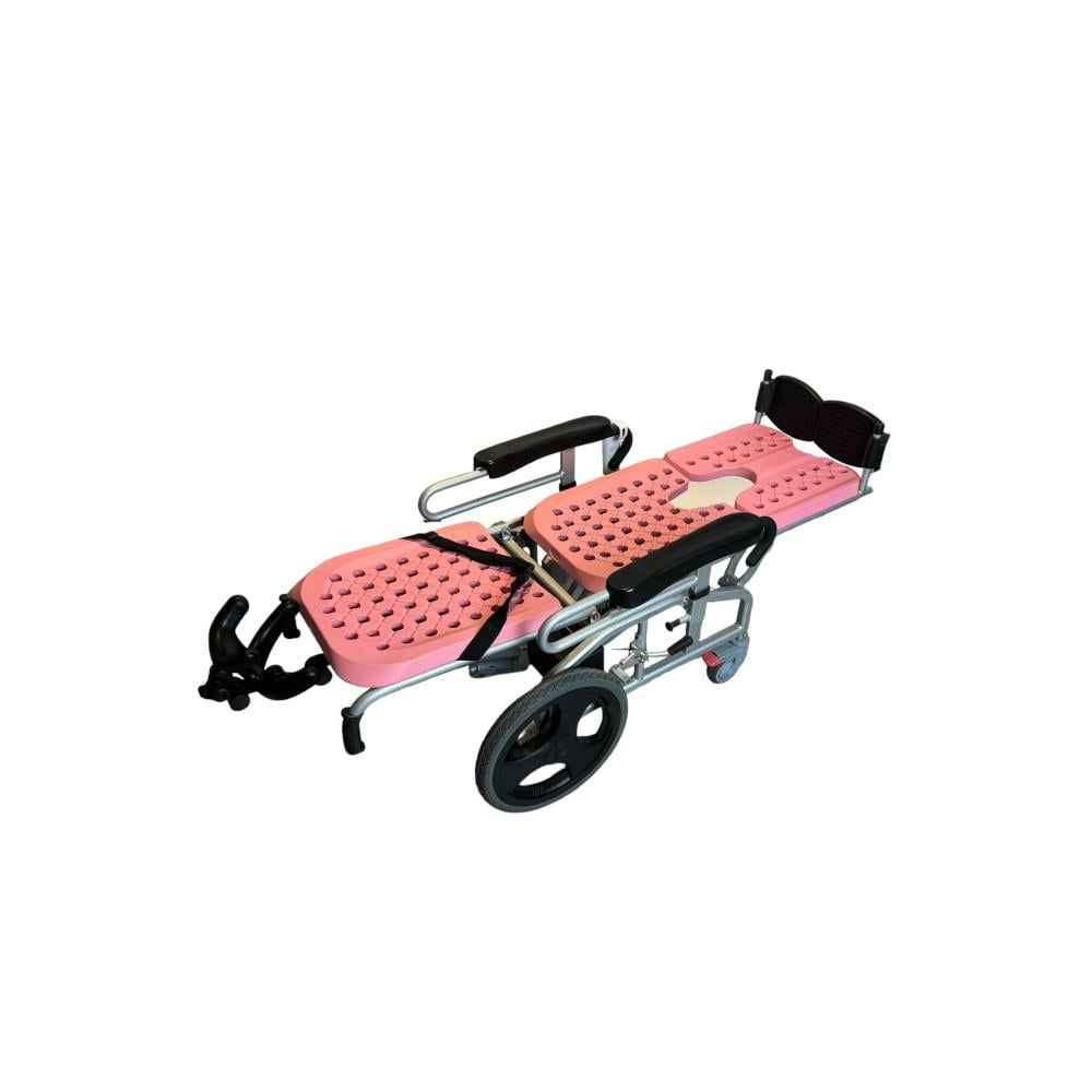هذا الكرسي يساعد المرافقين في نقل المرضى الملزمين للفراش بكل سهولة ويوفر لهم الراحة أثناء الاستحمام. يمكن تحويل الكرسي إلى سرير بواسطة الريموت، حيث يتم طي الظهر ورفع الأقدام. يوفر ذلك وضعية مريحة وآمنة للمرضى أثناء الاستحمام.