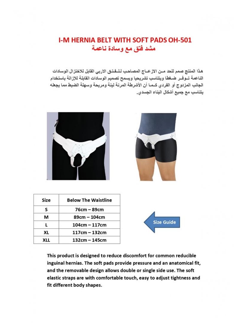 مشد الفتاق مع وسادة OH-501 يوفر دعمًا فعالًا للفتاق ويساعد في الراحة.